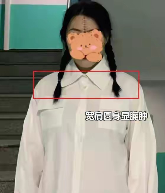 首先选择的衬衫上衣像下面这种“宽肩圆身”的款式就尽量不要穿了,穿在身上之后,整个人显得非常臃肿,让你显胖显土。