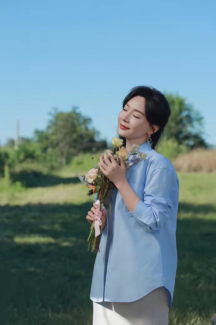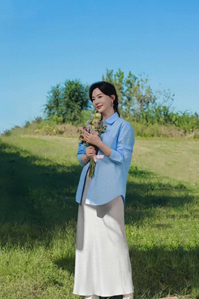 不得不说,“陈数”的穿衣打扮确实很有借鉴性,用一件蓝色的衬衫上衣搭配上一条直筒半身裙,扎的一款麻花辫发型,嫩得像20岁的少女,确实显得年轻。