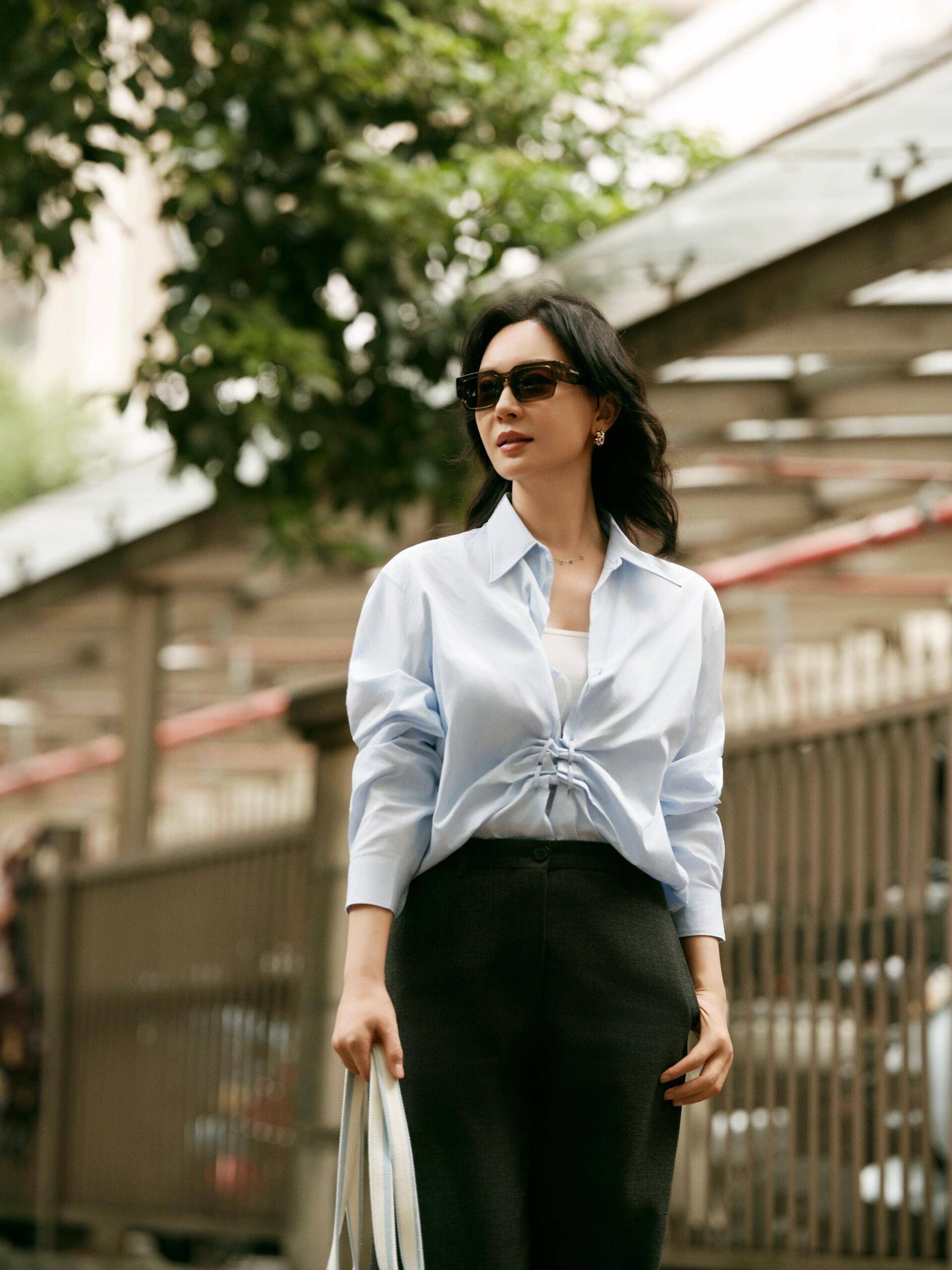 咱们一起来看一下“陈数”这位女明星的穿搭案例示范,看她是如何把衬衫穿出高级感的?